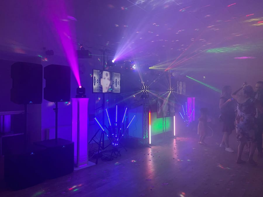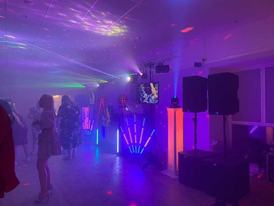 This page is for our DELUXE mobile disco, which is our biggest and most eye and ear pleasing setup and suitable for venues such as village halls and marquees where size isn't limiting. We are able to tailor all of our packages to give you the most impressive looking and sounding setup that the space available allows. This package is for every piece of equipment in our range, so is not just incredible sounding but eye-dazzling and guaranteed to give you and your guests the ultimate party vibe!