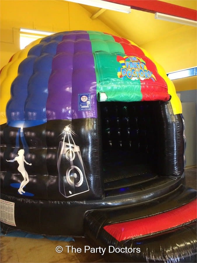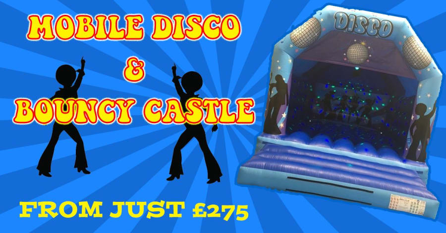 Standard Disco PLUS a bouncy castle with in-built disco lights & speaker!